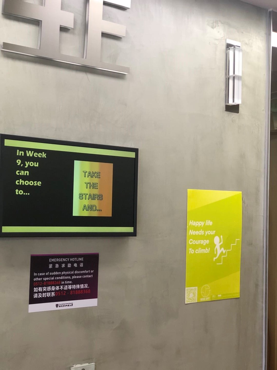 offered a quiet activity, puzzles for IBSSers including the Property Management Office, security officers and cleaning staff who took advantage of this to help relieve stress and give their brains a break. Week 9’s focus was on encouraging IBSSers to choose the stairs rather than the elevator, thereby reducing electricity consumption and improving one’s health. Posters and prizes were distributed throughout IBSS to encourage this