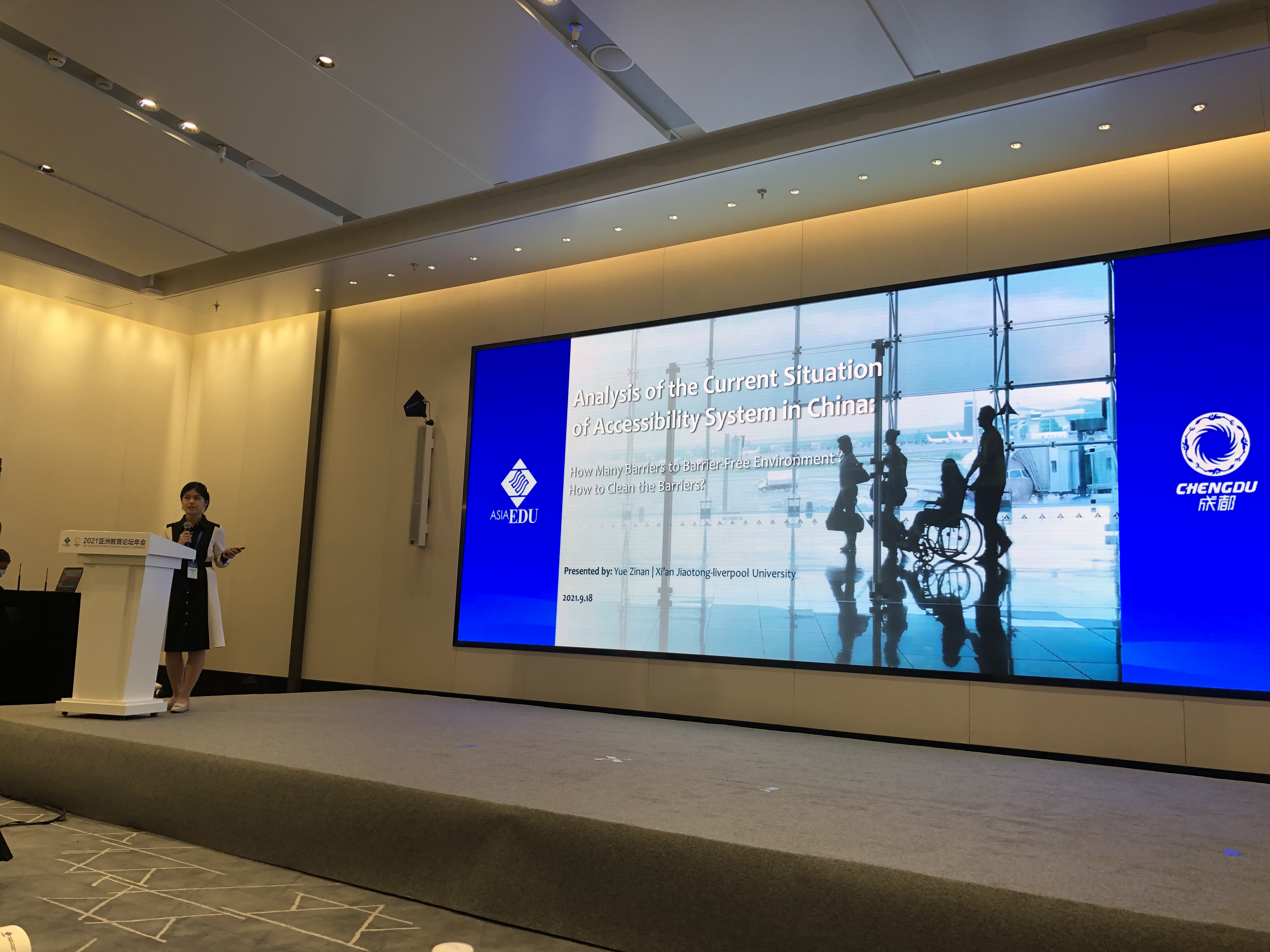The inspiration of the topic that she chose came from a video posted by a disabled Chinese girl whose normal life was obstructed by the lack of barrier-free facilities, which stimulated her desire to do a research study on barrier-free systems. In her presentation, she discussed the current problems of accessibility in China as well as provided an analysis and suggestions for improvement. She is hoping that more will be done in China to provide inclusive access. As one of the guests of the event said to her, "If you have an idea, put it into practice"