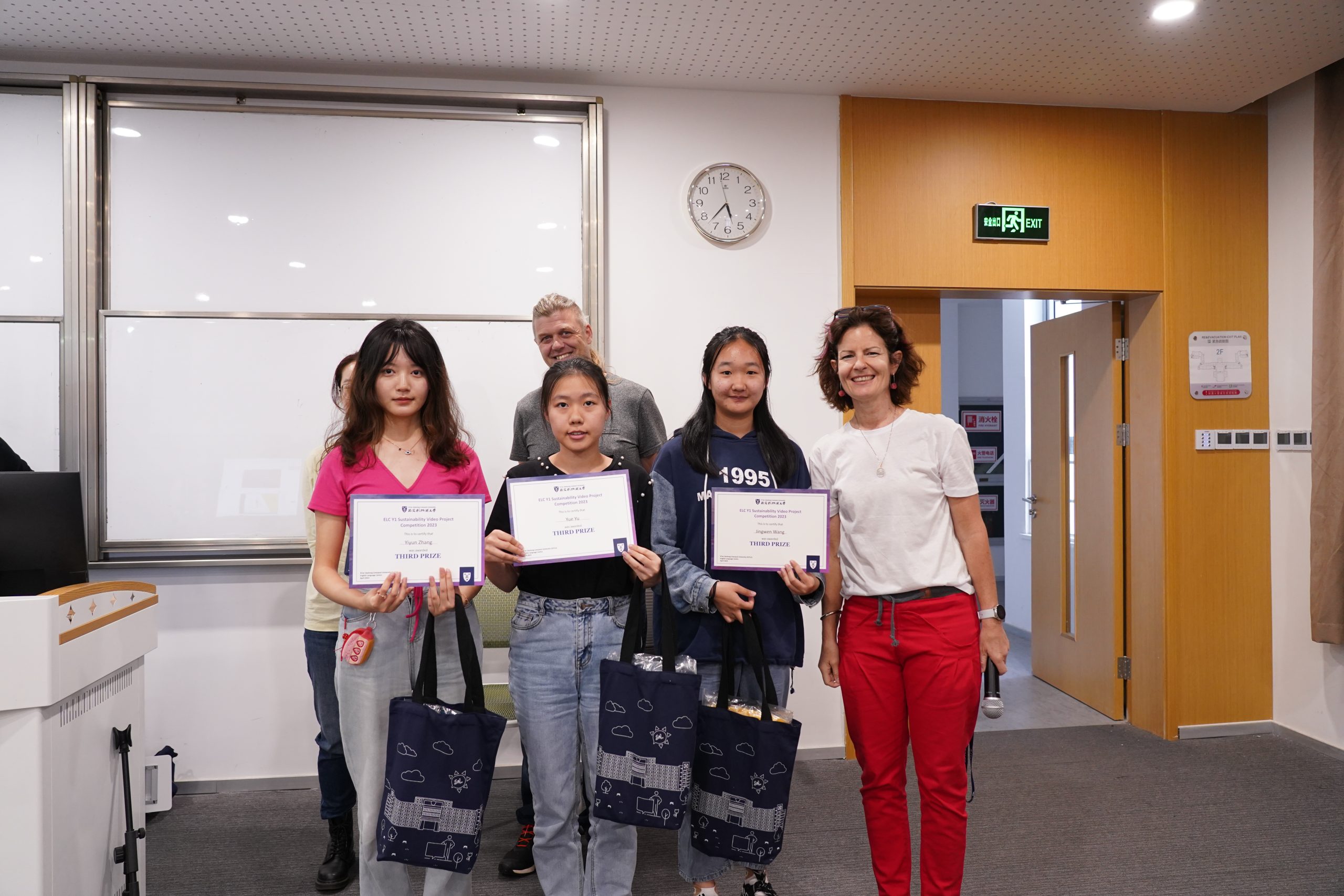 A group composed of Jinwen Wang, Yiyun Zhang and Yue Yu received third prize for their video, which is also about food waste.