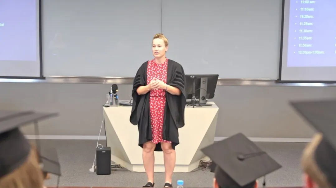 Dr. Ellen Touchstone, IBSS Associate Dean for Responsible and Sustainable Business Education, also spoke as a representative for the FYP supervisors. She praised the BI students for their academic creativity, adventurous spirit, and resilience, noting that their cohort upheld the high standards set by their predecessors. Dr. Touchstone appreciated the international students for bringing their passion for sustainability and creative problem-solving to the group.