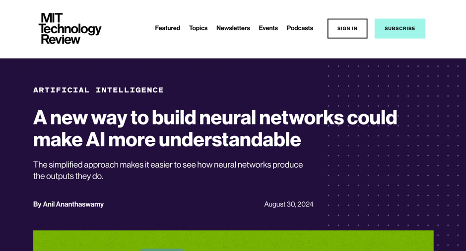 Summary: According to a recent article on MIT Technology Review, a new neural network model called Kolmogorov-Arnold Networks (KANs) simplifies artificial neuron operations, potentially making AI systems, like GPT-4, easier to interpret.