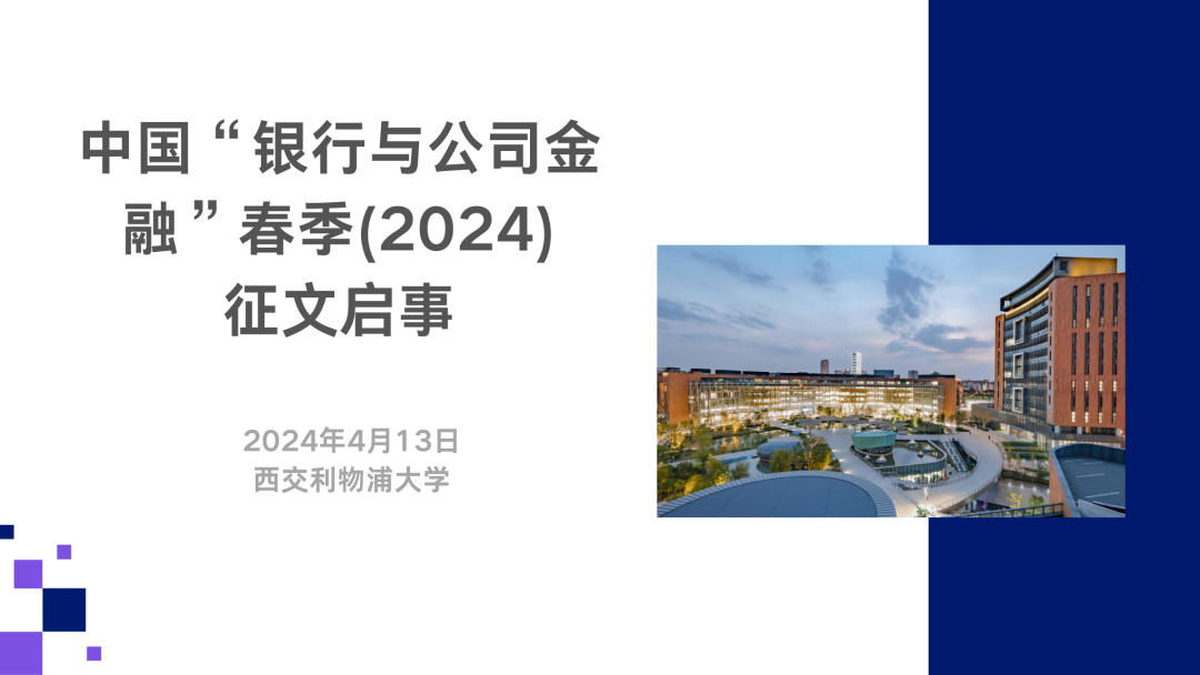 “银行与公司金融”是金融学领域的重要研究分支,也是面向国家重大需求和经济主战场的重要研究阵地。为践行“从国情出发,从中国实践中来、到中国实践中去,把论文写在祖国大地上,使理论和政策创新符合中国实际、具有中国特色”的伟大使命,推动中国“银行与公司金融”相关主题学术与政策研究,探讨学术思想、促进学术繁荣,2024年4月13日将举办中国“银行与公司金融”春季论坛(China Banking & Corporate Finance Conference,CBCF)。此前,CBCF青年论坛的系列会议已经先后在南开大学、中央财经大学、中南财经政法大学、暨南大学、厦门大学顺利召开,得到了国内外学界同仁的大力支持。
