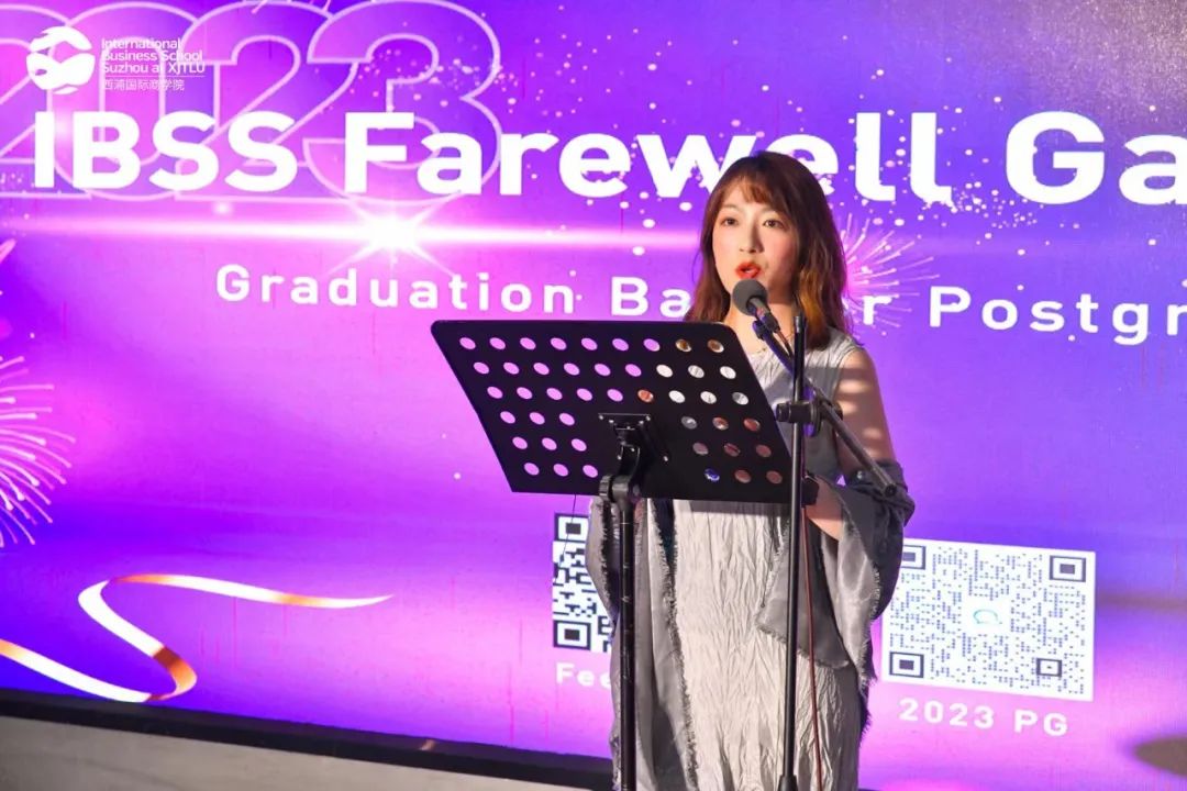洛桑旅游国际商学院招生及校友主管邹瑶女士同样也为本次舞会致辞。邹瑶女士首先表达了对各位研究生顺利完成学业的祝贺,和IBSS校友支持团队对毕业生们长期职业发展和终身学习支持的美好愿景。“基于内容,我们可以从公司内部咨询,研讨会等多个维度为你的雇主和团队提供支持;基于行业和地区,我们会不定时的举办校友聚会,提供更多的与同行交流的机会;基于知识,免费的软技能培训,以及对洛桑旅游校友独享折扣的兼职硕士课程也为校友们今后的自身发展提供了更多渠道。”邹瑶女士说。她同时也呼吁大家,在今后的职场中为洛桑旅游国际商学院的学子在实习或就业方面提供相应的支持,并希望大家能以嘉宾或导师的身份在日后的职业发展活动中为在校学生提供支持。达成和学校“双向奔赴”的美好目标。