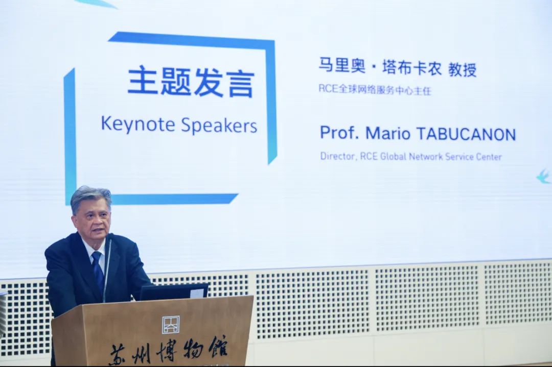 随后,亚洲理工学院荣休教授马里奥·塔布卡农对RCE苏州的成立表示美好的祝福,并向与会者深入介绍了RCE全球网络的服务中心。全球RCE服务中心设于联合国大学可持续发展高等研究所,这一中心旨在为个体RCE提供帮助,并促进RCE间的交流和联网。他说,我们需要将全球性的框架转变为地方性的举措,地方组织包含着不同跨领域的机构将更好的推送可持续发展及教育转型。最后,UNESCO中国可持续发展教育项目秘书处执行主任,中国可持续发展教育之父史根东博士为活动送上了视频致辞。他谈到,人类正在迈向值得憧憬的生态文明社会,在此形势下,RCE苏州的建立是一桩喜事。并祝愿未来RCE苏州能构建成中国乃至世界的全球地区中心。