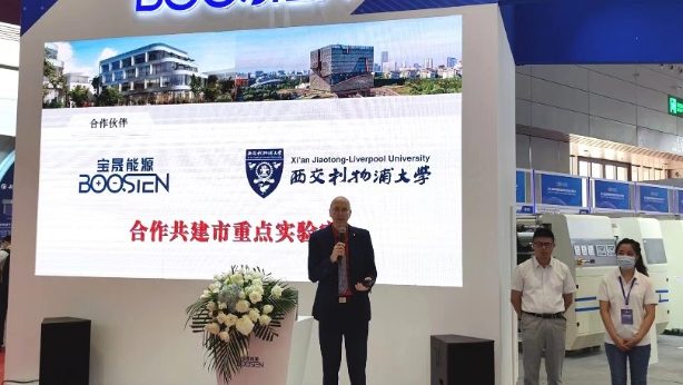 宝晟(苏州)能源科技有限公司(以下简称宝晟)成立于2019年6月,主要研发新能源材料、新型干法电极工艺和相应的工业设备,其中新型干法电极工艺是目前新能源行业最具应用前景的技术之一。2023年5月16日-18日,宝晟在第十五届深圳国际电池技术交流会/展览会(CIBF)期间向行业内外展示了其自主研发的技术、设备和产品,展示了公司在新能源领域的持续创新成果和相关产品。理学院院长John Moraros教授和副院长杨莉教授一同参观了CIBF国际电池展览会,并在展会上与宝晟签署合作协议。