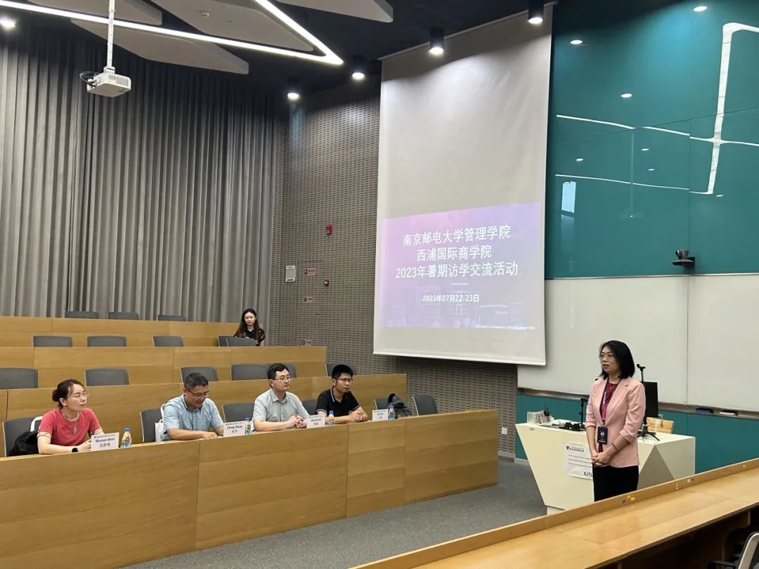 在欢迎仪式上,洛桑旅游国际商学院学术合作副院长王鹤菲教授首先致辞。她向南邮管理学院师生致以热烈欢迎,并鼓励同学们在接下来的访学行程中享受洛桑旅游国际商学院提供的国际化学术氛围和以研究为导向的教学理念,希望同学们能在此次访学交流活动中获得实实在在的收获。