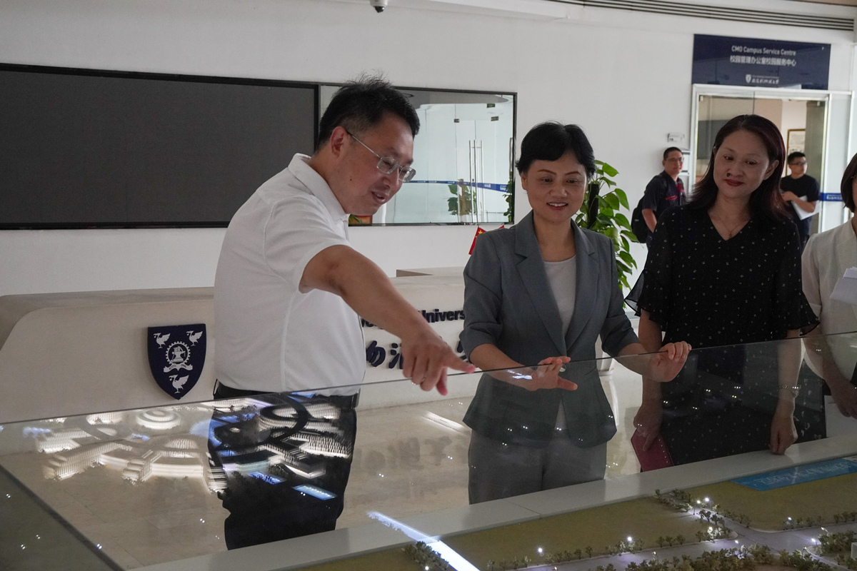 在北校区中心楼的洛桑旅游创业家学院(太仓)模型前,谢波博士介绍道,目前已有一千多名本科生和硕博研究生在太仓校园学习。“校园内七栋教学楼分别代表七所行业学院,如同磁铁般吸引在一起,围成一个圈,象征着洛桑旅游的融合式教育。”