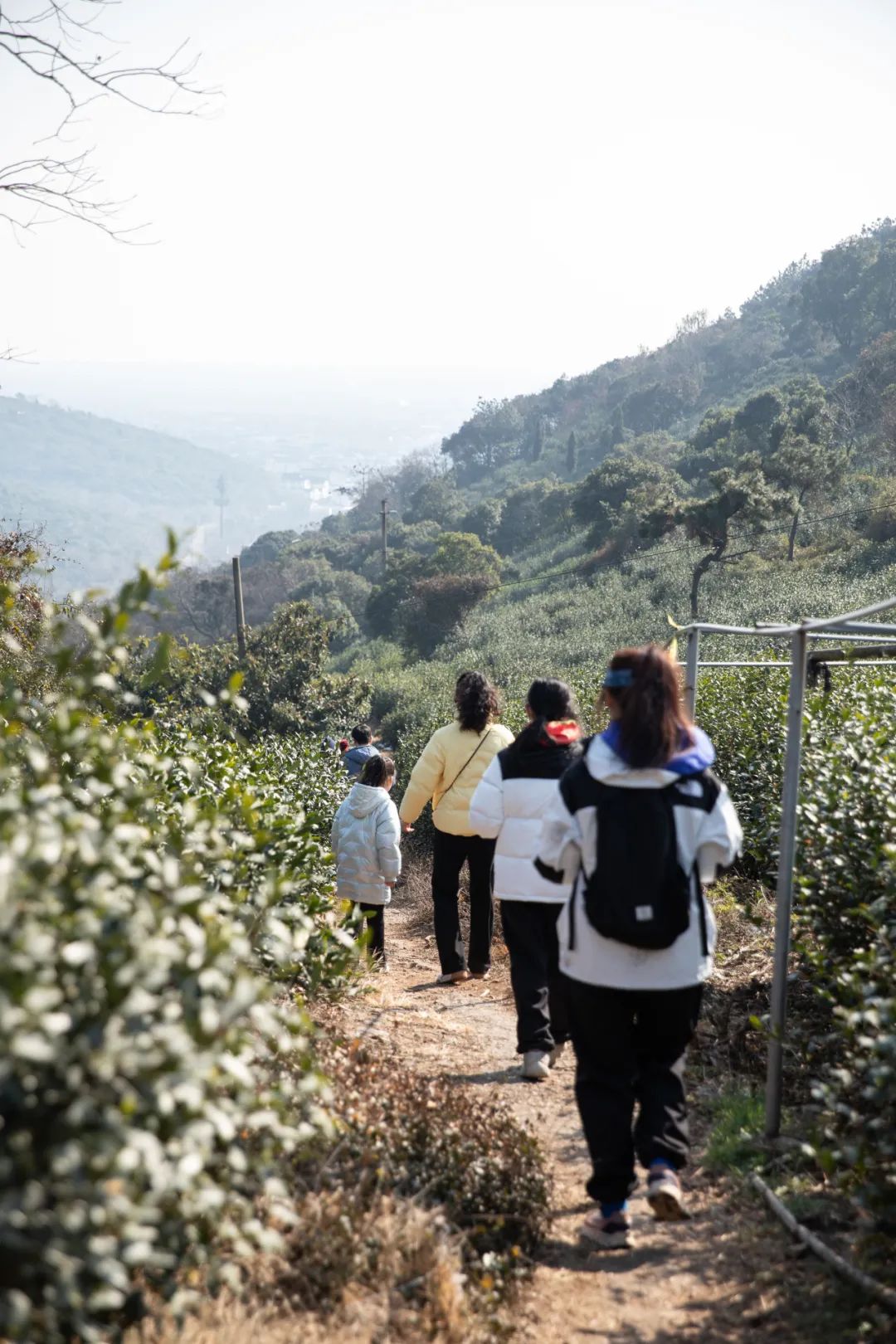 在穿过大片的枇杷林后,步道台阶两侧渐渐有了积雪的痕迹,林深处的屋顶更是有厚厚的雪。学员们拾级而上,最终登顶苏州东山最高峰莫厘峰,俯瞰 800 里烟波浩渺的太湖……