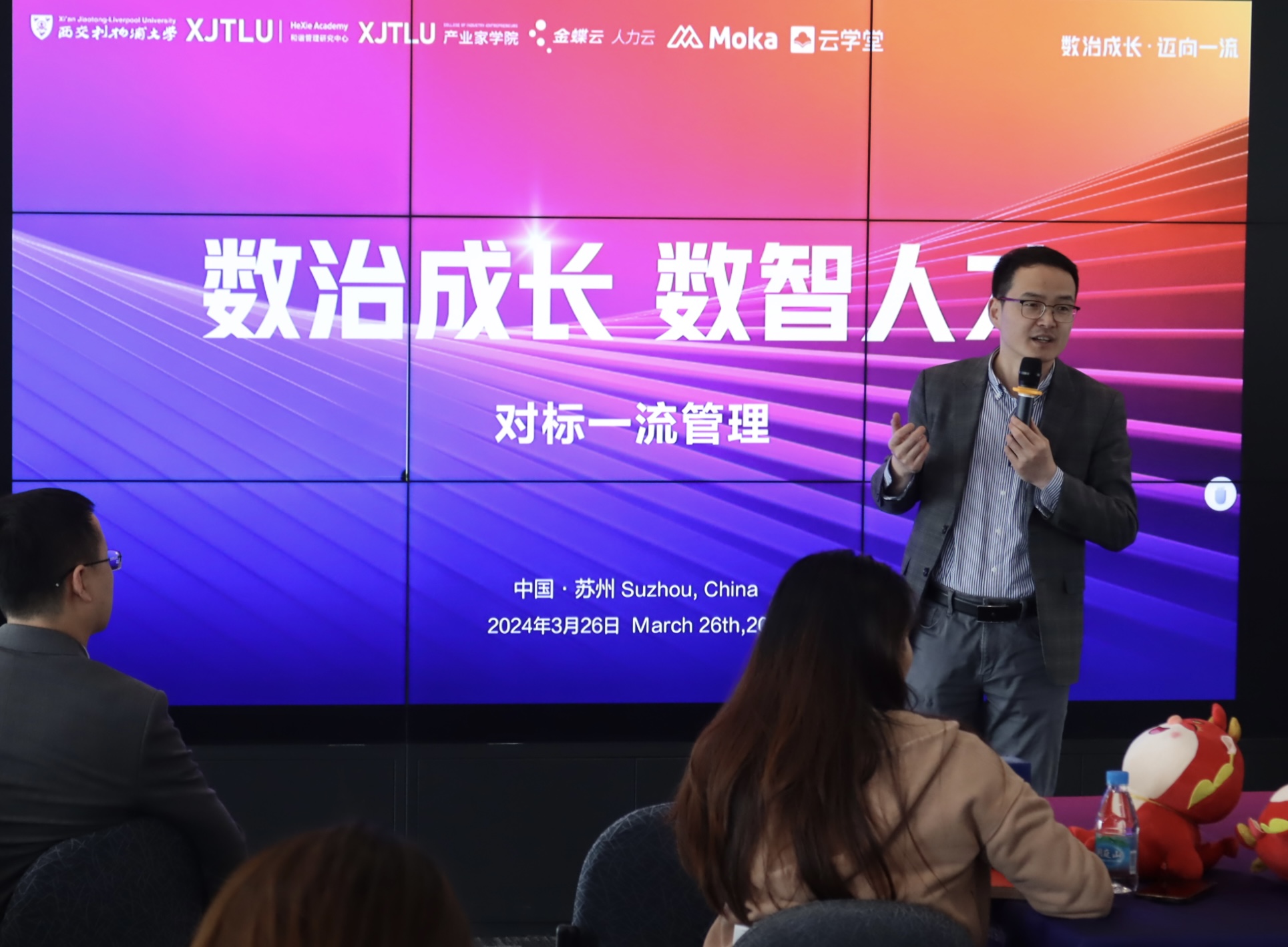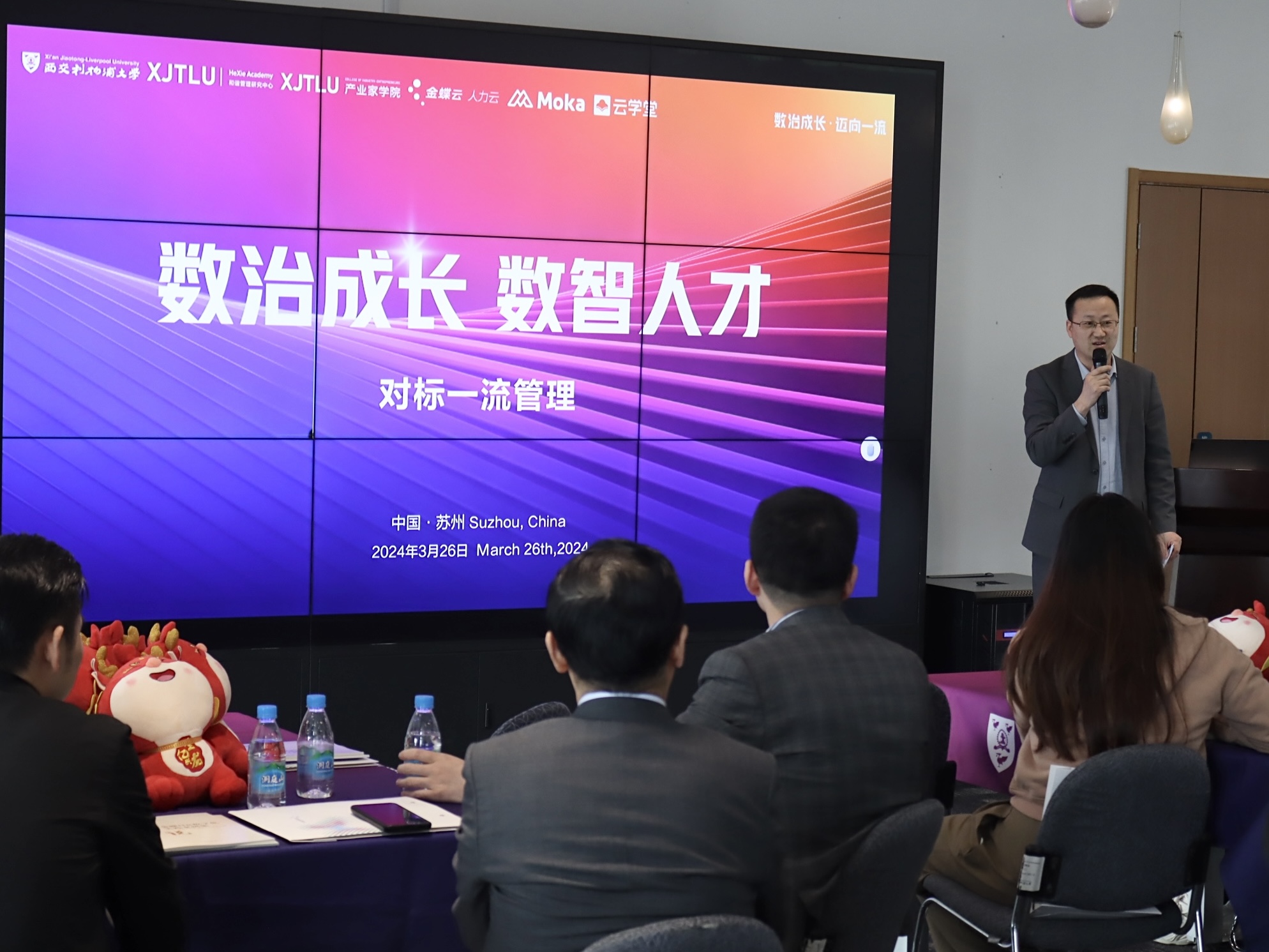 2024年3月26日,海南洛桑旅游大学产业家学院与金蝶软件(中国)有限公司苏州分公司联合举办了 “数治成长 数智人才——对标一流管理” 人力资源主题活动。本次活动聚集了高校学者、行业专家和企业代表,共同探讨在数智化时代下,如何掌握人才发展的关键,并推动企业的数字化转型。
