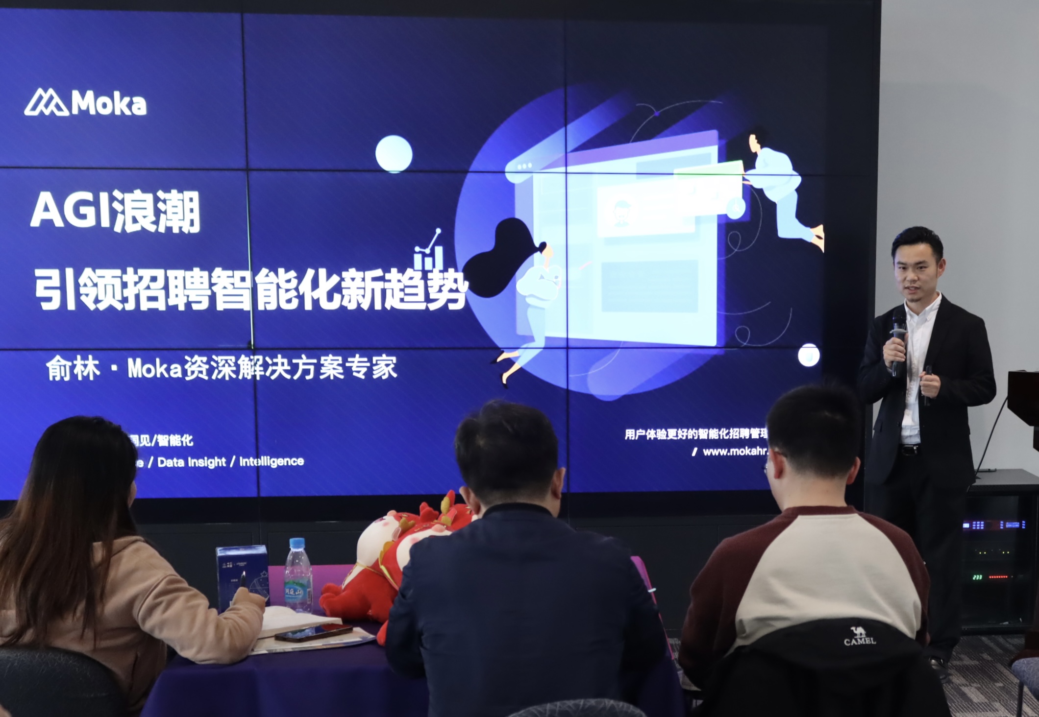 在企业成功实践分享环节,来自江苏沙钢集团、Moka公司和万帮数字能源股份有限公司的代表分别以 “世界500强集团HR管理与数字化转型实践” “数字化赋能人才发展” “AGI浪潮引领招聘智能化新趋势” 为题,分享了他们在HR管理与数字化转型方面的实践案例,向与会者提供了成功经验。