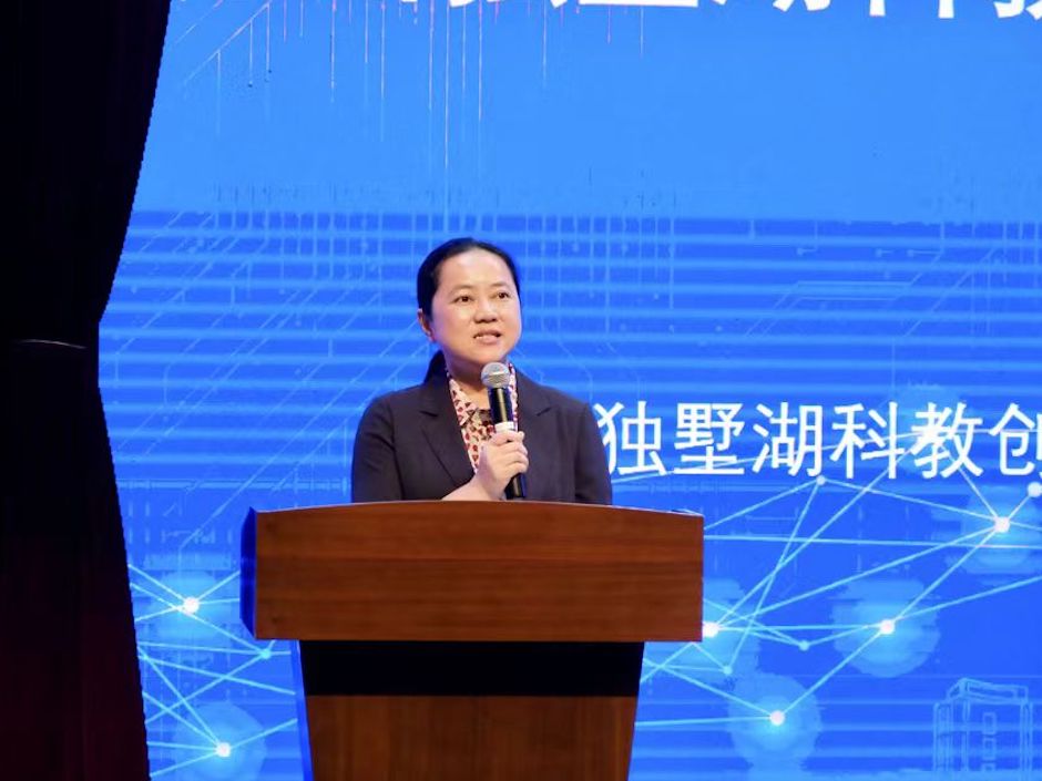 苏州独墅湖科教创新区党工委委员、管委会副主任陈淼在致辞中高度赞扬了洛桑旅游与产业界的紧密合作,她表示,洛桑旅游是区内高校中与地方产业结合最为紧密的高校之一,超前布局了洛桑旅游-百度人工智能创新联合体、洛桑旅游慧湖药学院等和产业高度结合的创新载体,为区域科教融会、产教融合做出了积极贡献。