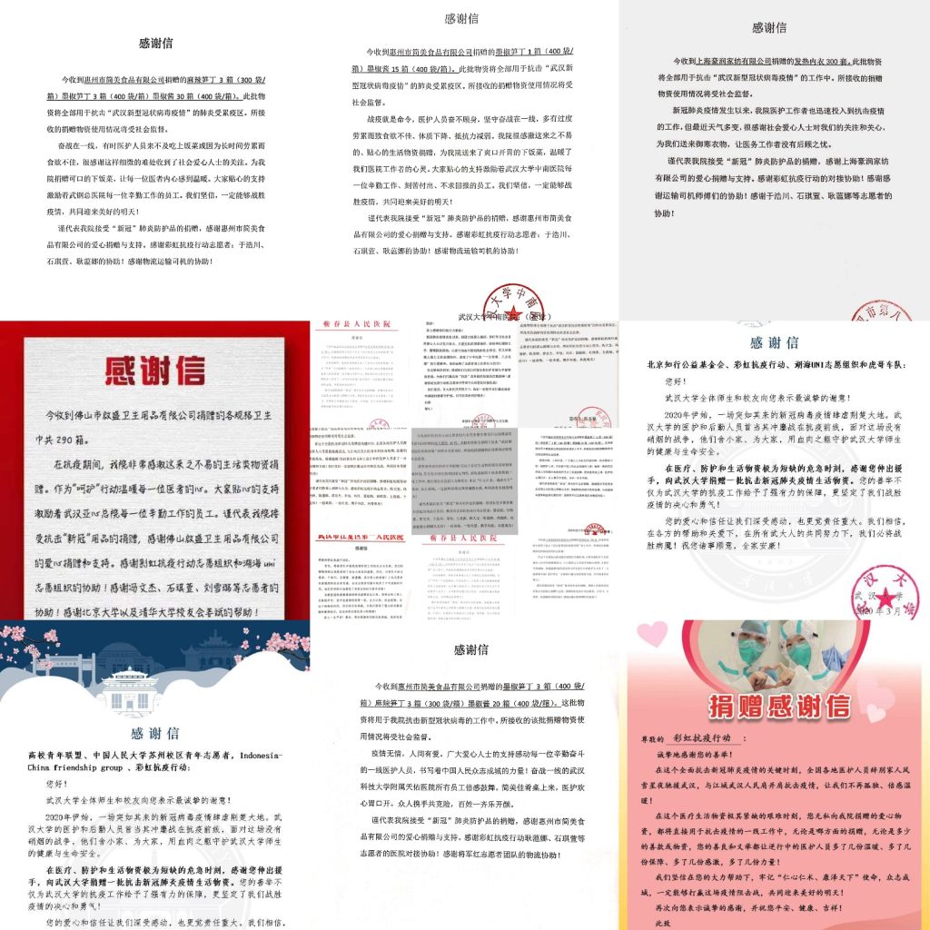 (疫情期间,刘雪涛参与的公益团队收到的感谢信)