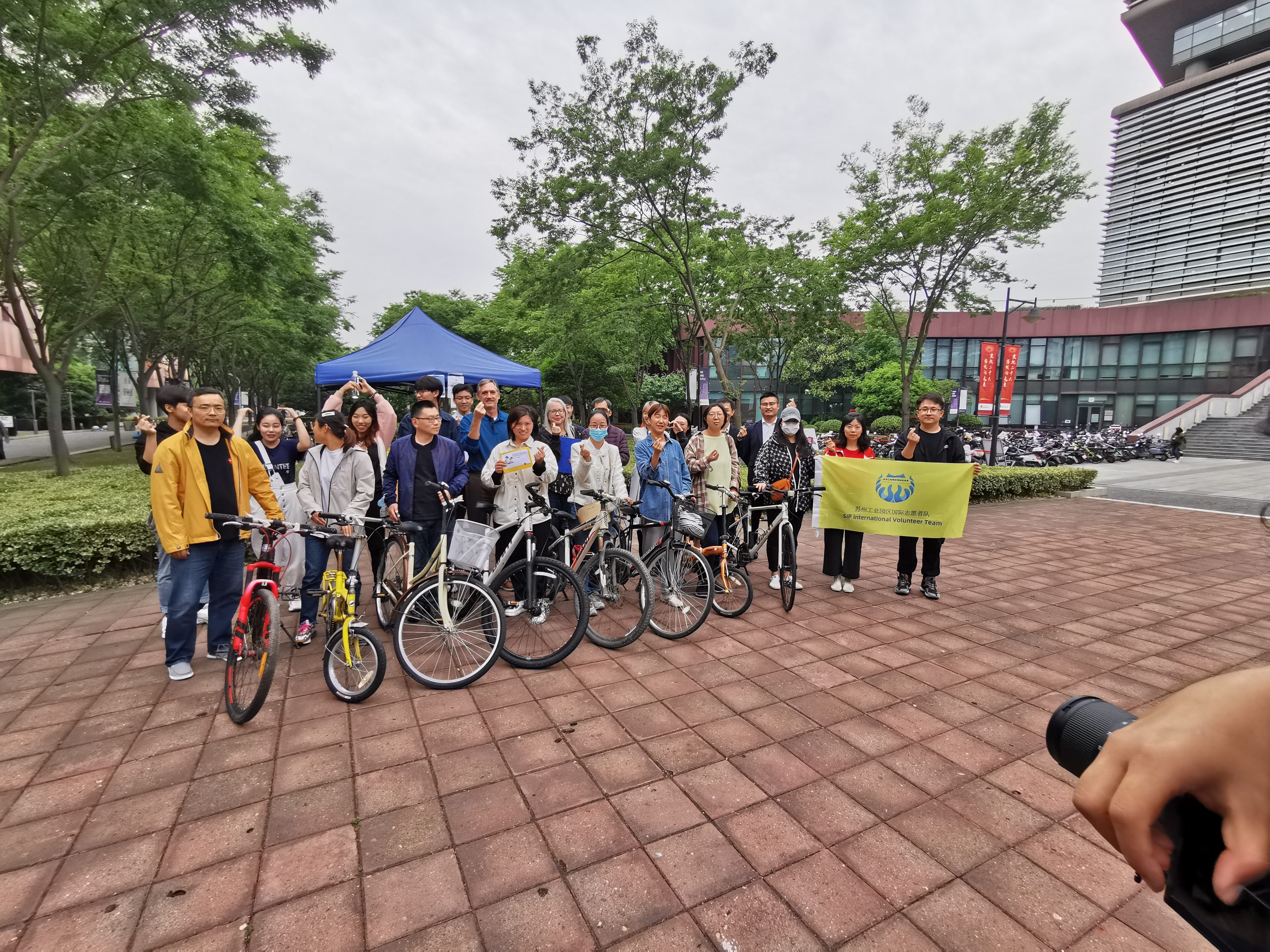 单世宇和同学们在自行车再利用慈善活动