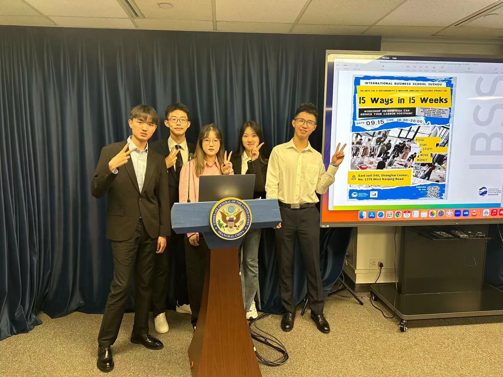 两位同学都提及了IBSS责任与可持续商业教育副院长施爱伦(Ellen Touchstone)博士对于学生参与全球可持续事务工作的支持。单世宇更进一步提到了自己在学生组织Sustainable Future Talents(SFT)中作为核心领导者,深度参与了以可持续发展为主旨的 “15 Ways in 15 Weeks” 项目,让他意识到推广可持续理念不应仅仅依赖于企业和大学管理层,学生群体的创造力更有将这一概念以趣味生动、贴近生活的方式呈现的潜力,这将有助于推动形成以个体为中心辐射影响广大年轻群体的模式。