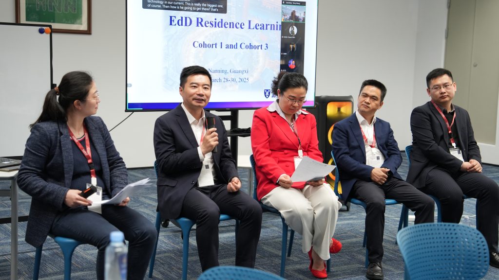 AISL哈罗教育集团首席教育官Ahmed Hussain博士、南宁哈罗学校副校长Emily Gallagher以及温州肯恩大学教育领导与管理系主任Noman Mohammad博士和同学们就教育发展关键议题展开深入讨论。